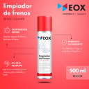 EOX Limpiador de Frenos Brake Cleaner esta disen?ado para optimizar el proceso de limpieza de calipers, pastillas, discos y tambores de frenos. Su formula en base a alcohol permite una remocion rapida y eficaz de suciedades grasas, oleosas, polvo adherido y hollin. El producto presenta un secado instantaneo sin dejar residuos. No dana los o-rings, el polipropileno ni la pintura. Puede ser usado como un limpiador universal de grasas y aceites. Su formato aerosol permite controlar el uso y otorga una comoda aplicacio?n. Fabricado en Chile.